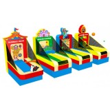 A set of 4 inflatable carnival games. Each one is measured 8 feet long, 4 feet wide, and 8 feet tall. Each game can be used individually or connect all together as a group. The game includes: - one Basketball Playset; - one T-Ball Game; - one Shooting Game; - one Tossing Game; Create the ultimate carnival experience with a Carnival Midway. Booths, games, and prizes, participants can get a feel of the Boardwalk as they try winning at one of the four games in the inflated game booths. $100.00 each all four $400.00